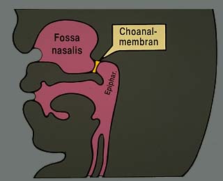 Die Choanalmembran entsteht um die 8. Schwangerschaftswoche.