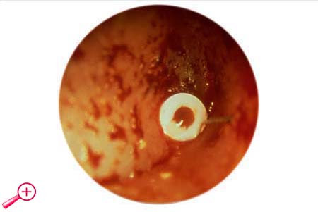 Ansicht eines Paukenröhrchens durch das Otoskop