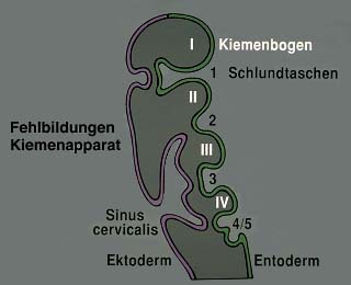 In einer späteren Entwicklungsphase vereinigen sich die Kiemenspalten 2, 3 und 4 zum Sinus cervicalis. Dieser verschwindet normalerweise.