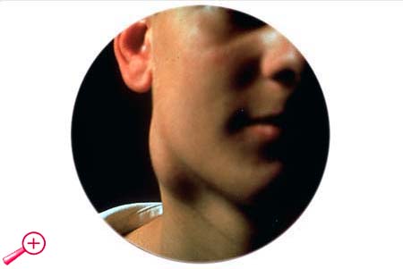 - meist im Kieferwinkel- Bereich, am Vorderrand des M. sternocleido- mastoideus