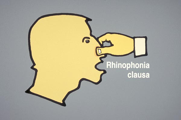 Die Stimme des Patienten mit einer verschlossenen Nase tönt ebenso charakteristisch, es ist die Rhinophonia clausa.
