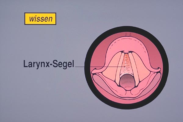 Zwischen beiden Stimmbändern spannt sich in der vorderen Kommissur eine schiwimmhautähnliche Membran und verengt das Larynxlumen. die Beschwerden, die von Geburt an bestehen, d.h. die Atemnot und die Heiserkeit, sind direkt proportional zur Grösse des Segels.
